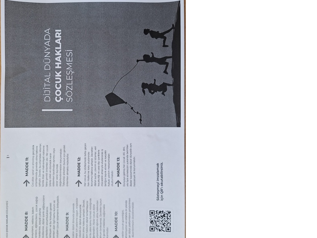 Okulumuz Çocuk Gelişimi Öğretmenleri tarafından Eylül ayında proje kapsamında '' Dijital Dünyada Çocuk Hakları Sözleşmesi'' kapsamında öğrencilerimize bilgilendirmeler yapılarak broşürler dağıtıldı.Emek veren öğretmenlerimize ve katılım sağlayan öğrencilerimize teşekkür ederiz.
